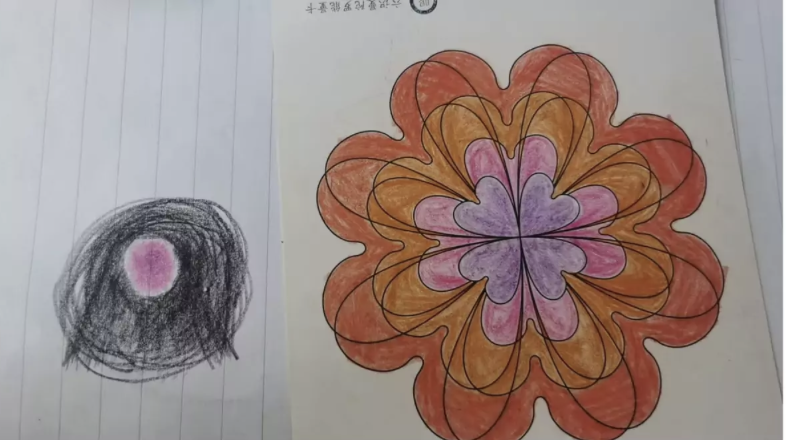 当老师说可以了的时候,还特别困,后面做了忏悔和念了心咒后,感觉一点也不累,很轻松。我说不上来什么感觉,因为我这次整个进入状态之后,注意力全在眼前了,然后就有一团,开始是一团紫色的,你说它是光吧,它又不是光,就感觉是一团。然后就是粉紫色的一会儿变小,然后又大了之后又变大,感觉进到一个黑洞洞里面一样的。