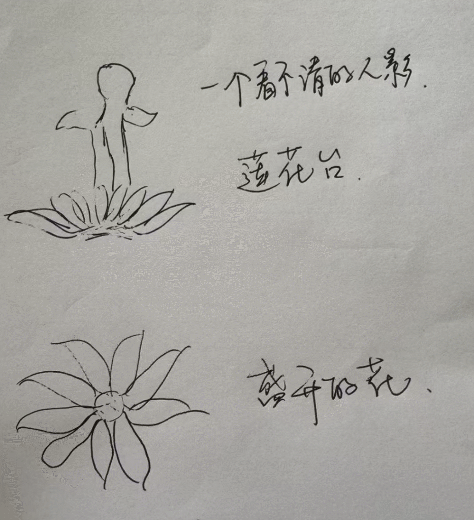 此外,这次出现了隐约的莲花和盛开的花。画面有了明显的颜色,也感受到了花瓣的盛开的动态。这些画面上有很明亮的光,是金色的带着亮晶晶,视觉上也温暖耀眼,给我的感受是非常舒服的画面,有能量的。